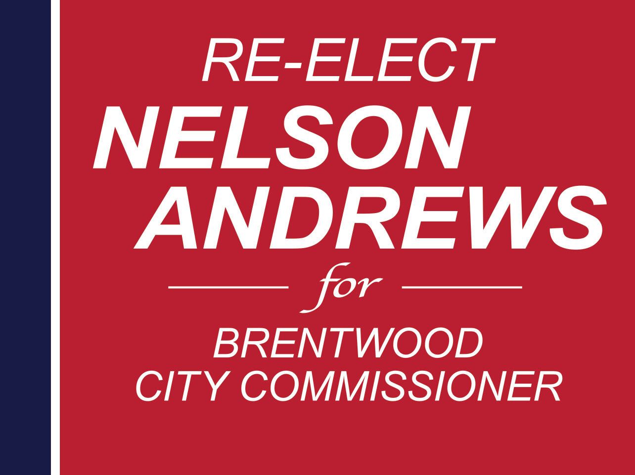 Nelson Andrews lives and runs a business in Brentwood. He is involved in all phases of activity and knows what the people in Brentwood want. He Always volunteers for whatever is needed in Brentwood. He has the highest ethical standards. I strongly endorse him for City Commission.