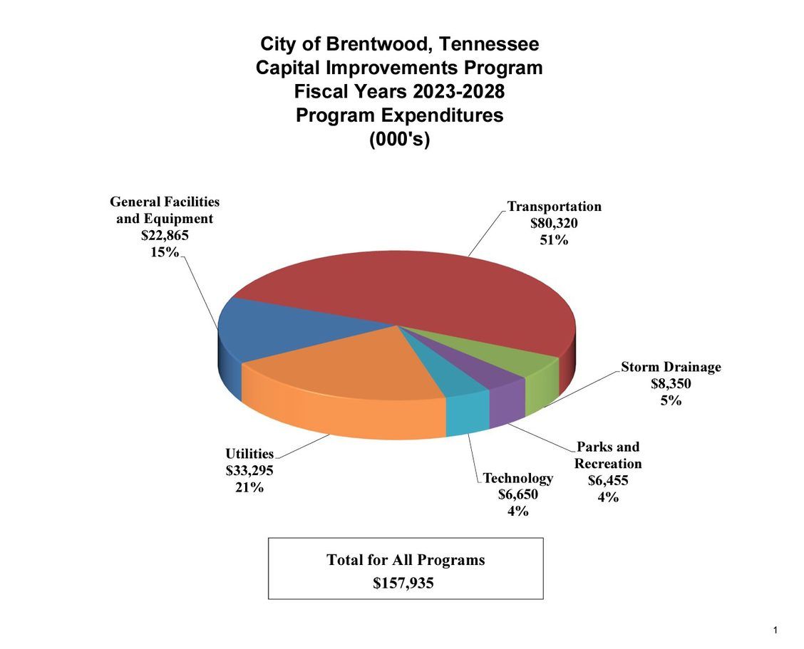 - Transportation is the single largest area of investment , followed by utilities (water & sewer), general facilities & equipment, then storm drainage.