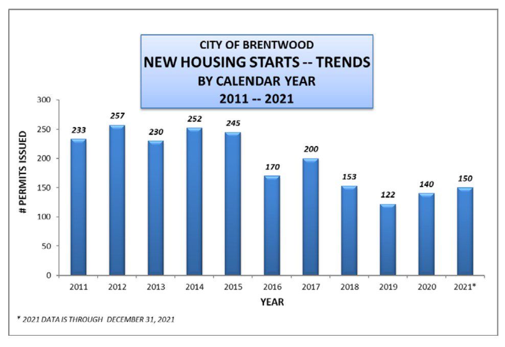- The Pace of new construction in Brentwood appears to be stable but at a lower level than in years past :